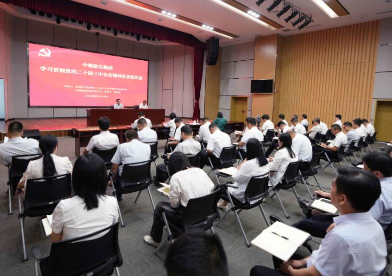 8月29日,按照省委和省政府國資委黨委部署,中豫航空集團舉行學習貫徹黨的二十屆三中全會精神宣講報告會。省國資系統(tǒng)宣講團成員,中豫航空集團黨委書記、董事長張明超作宣講報告,黨委副書記、總經理、副董事長柳建民主持會議,集團領導班子在鄭成員、中層管理人員、青年員工代表約300人參會。