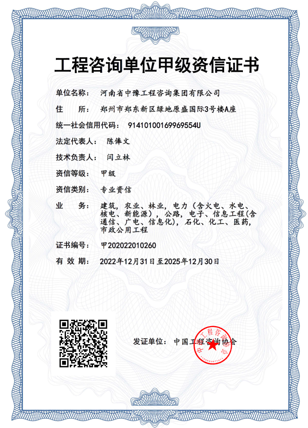 近日,中國工程咨詢協會對符合綜合甲級、專業甲級和專項資信評價標準的單位名單予以公告,河南航投集團旗下河南省中豫工程咨詢集團有限公司(以下簡稱中豫咨詢集團)成功獲得工程咨詢單位綜合資信甲級證書,新增了石化、化工、醫藥甲級專業資信,甲級專業數量和覆蓋面位列河南本土企業第一位。