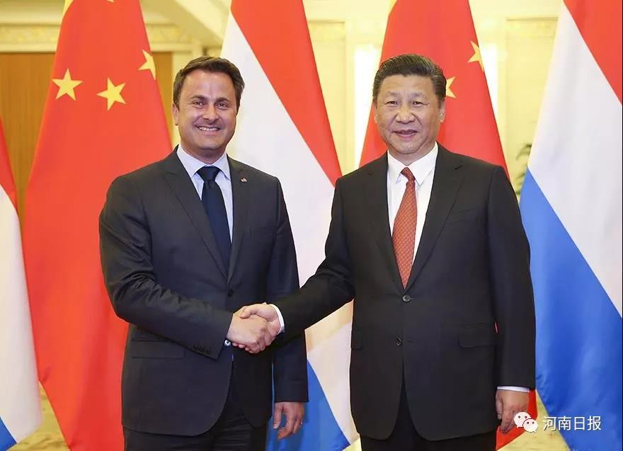 2017年6月14日,國家主席習(xí)近平在人民大會堂會見盧森堡首相貝泰爾,表示中方支持建設(shè)鄭州—盧森堡“空中絲綢之路”。